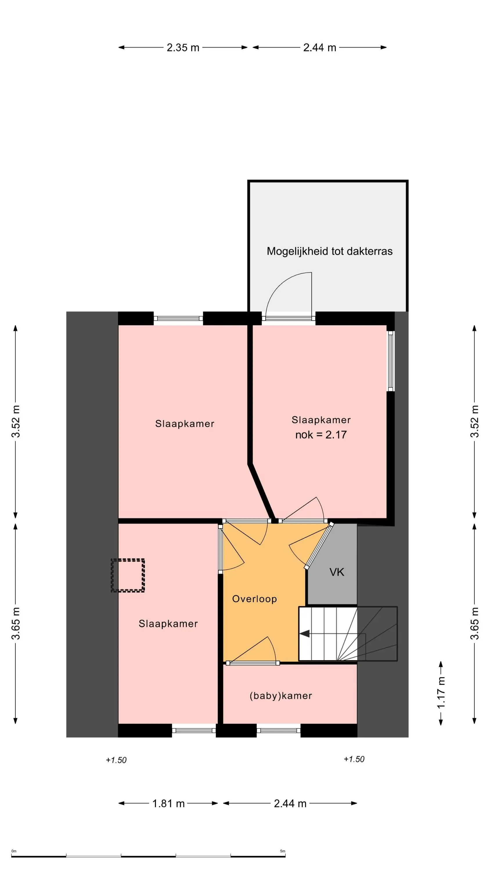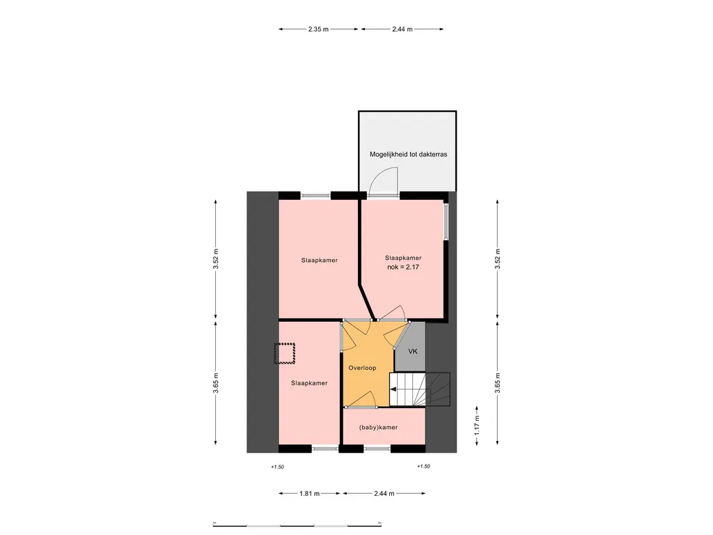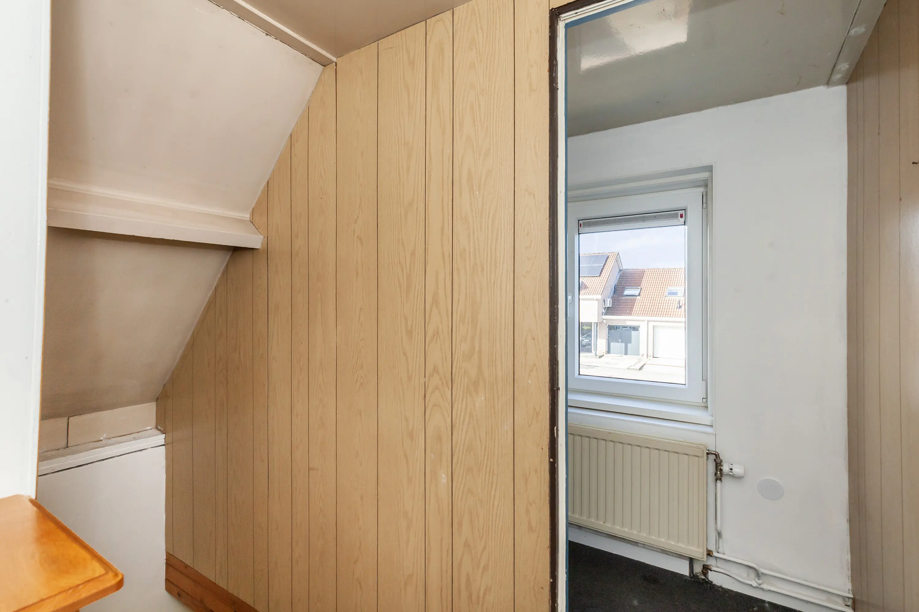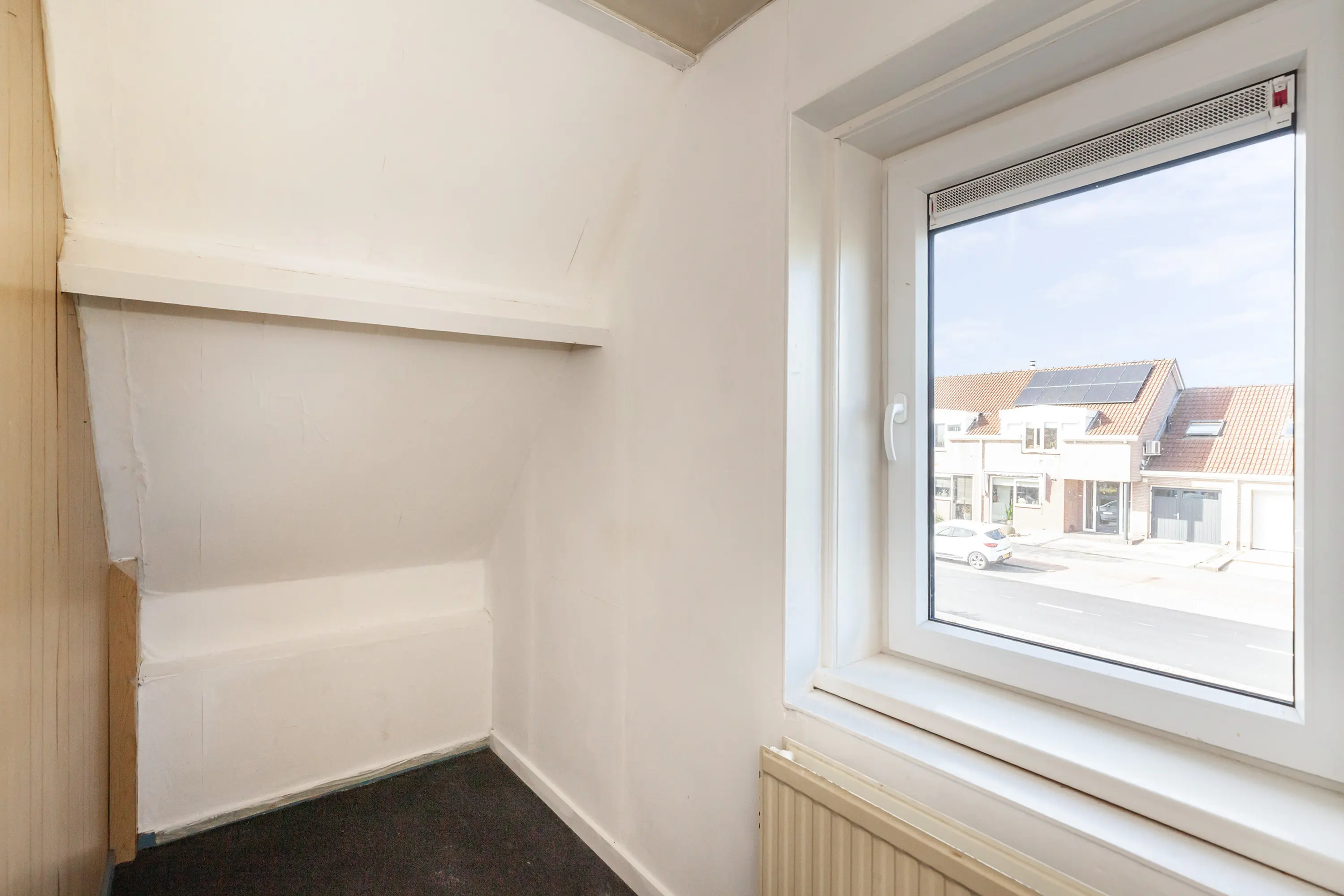 1e verdieping: overloop, bergkast, Slaap(baby)-kamer aan voorzijde, 3 slaapkamers waarvan 1 slaapkamer met mogelijkheid tot maken van balkon/dakterras.