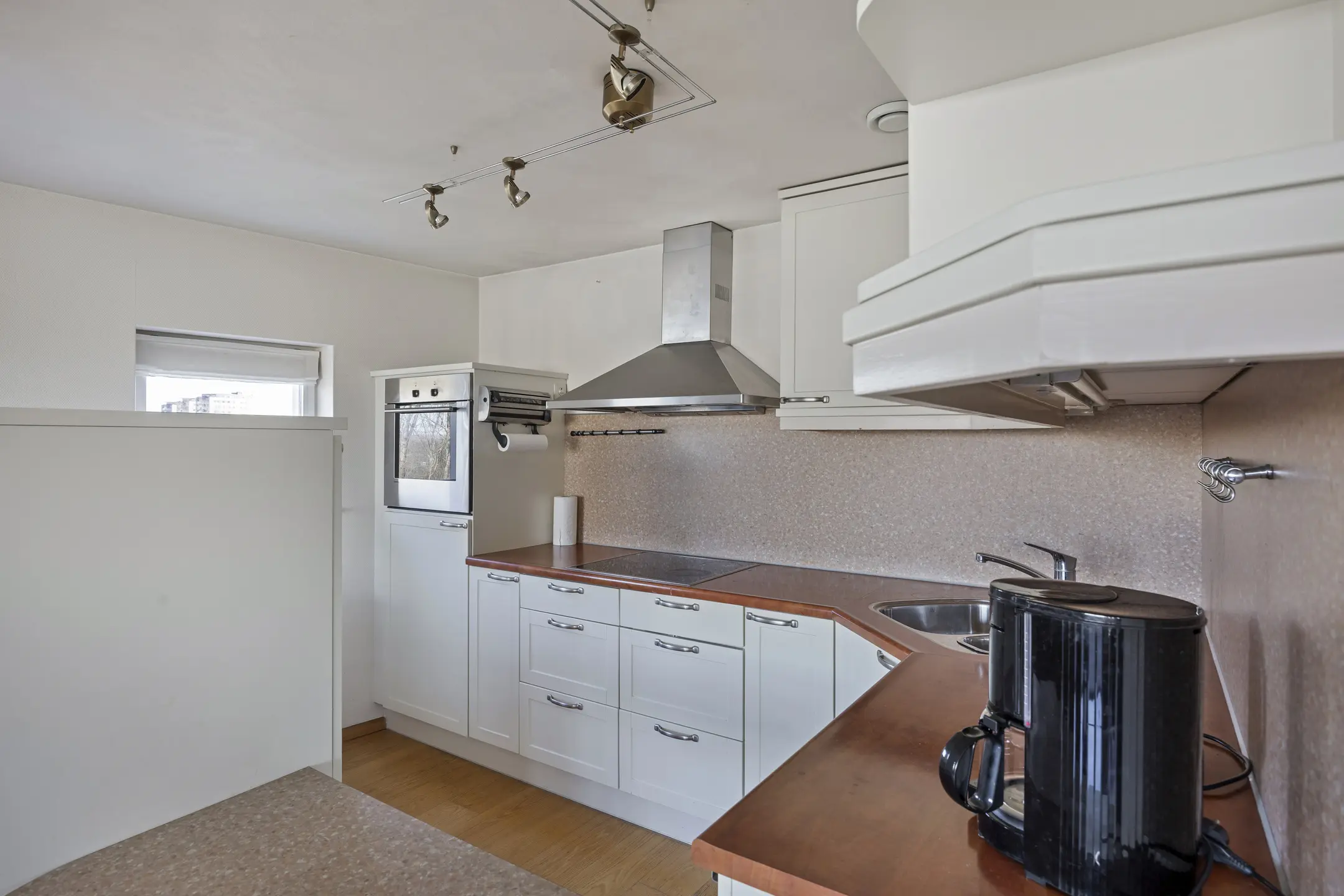 Het appartement beschikt over een prettige en lichte woonkamer met toegang tot het balkon-terras, waar je heerlijk kunt genieten van de buitenlucht en het uitzicht. De woning telt twee slaapkamers en is daarmee geschikt voor stellen, kleine gezinnen of thuiswerkers. Dankzij de ligging op de vijfde verdieping ervaar je veel rust en privacy.
