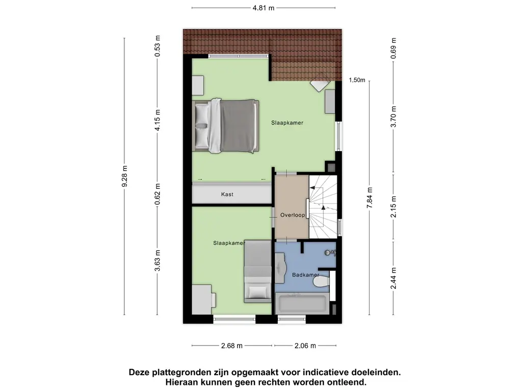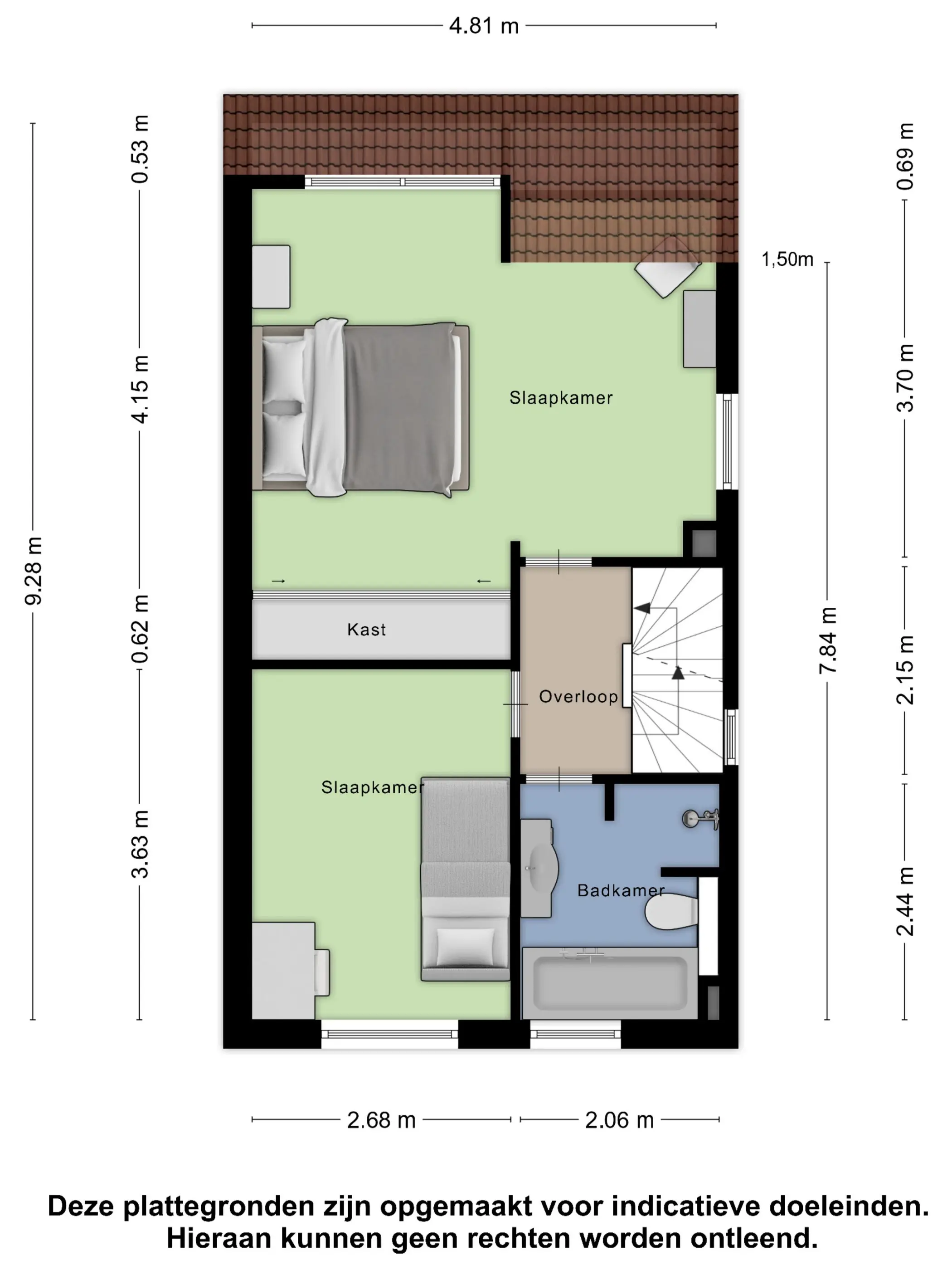 2e verdieping: ruime zolderslaapkamer, overloop, bergruimte