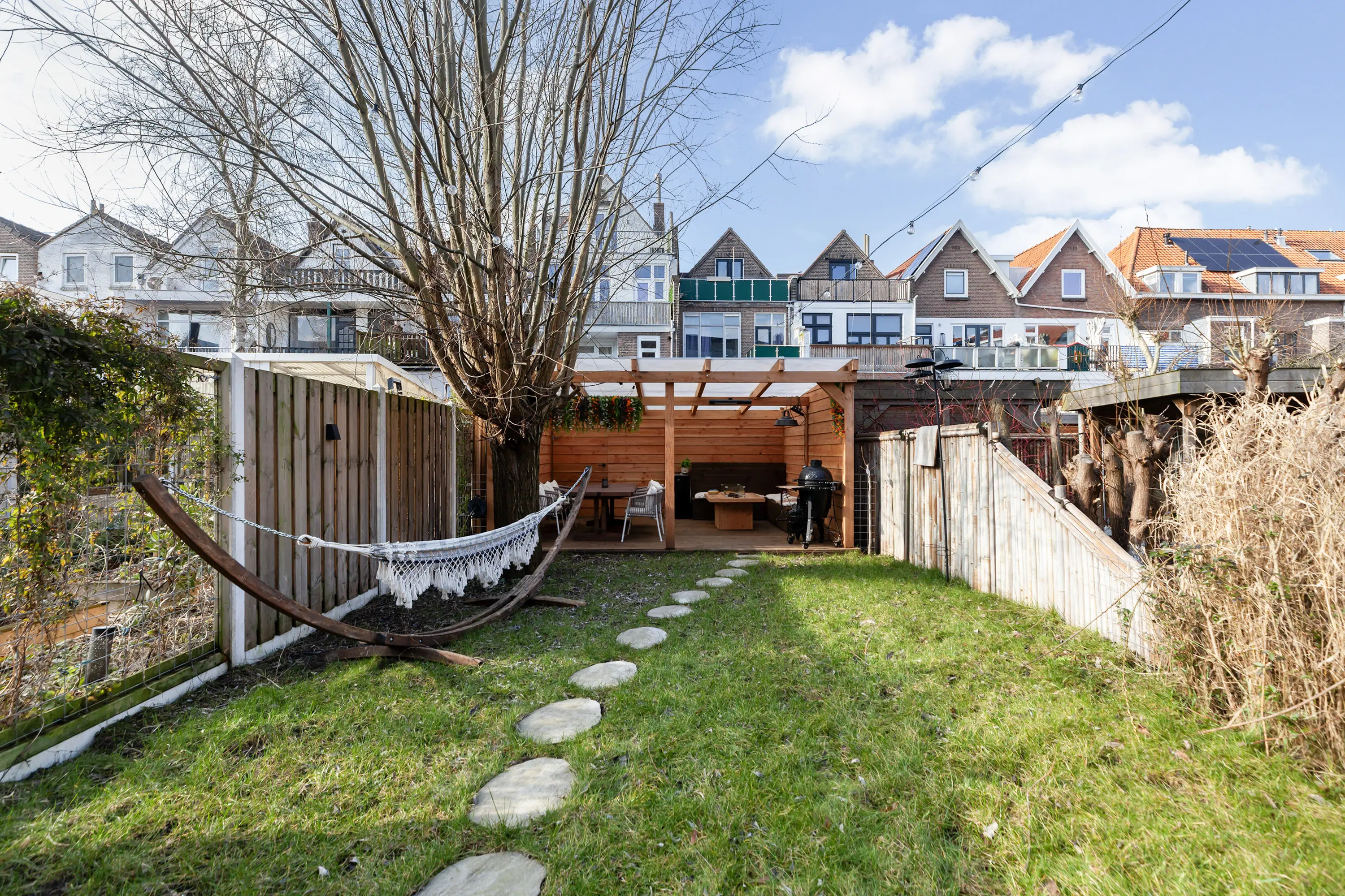 • Zonnige, diepe tuin met overkapping en lounge