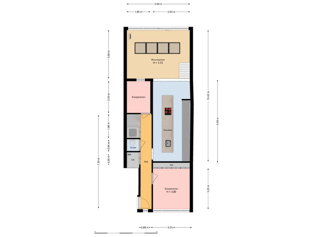 • Uitgebouwde benedenwoning met split-level living