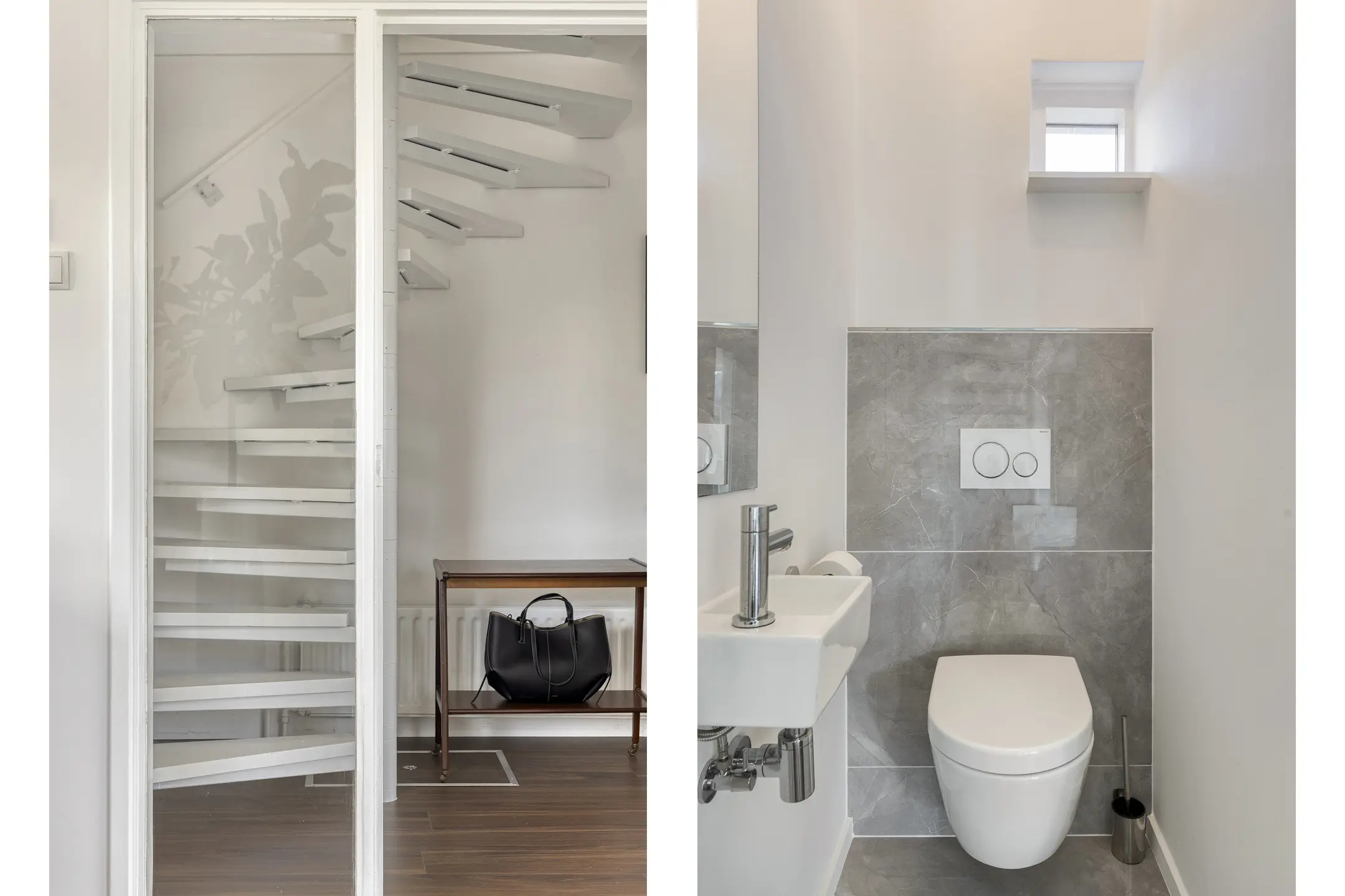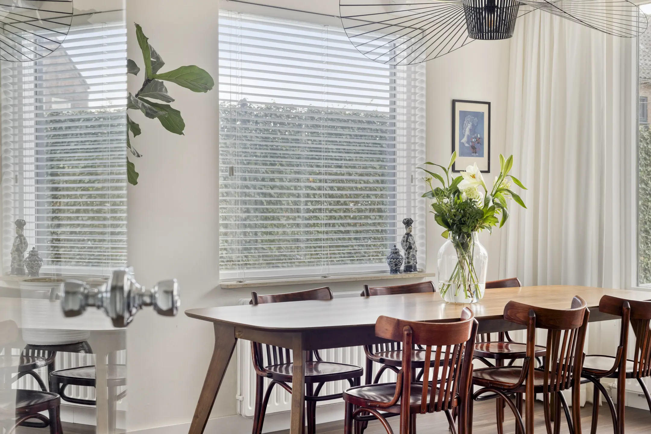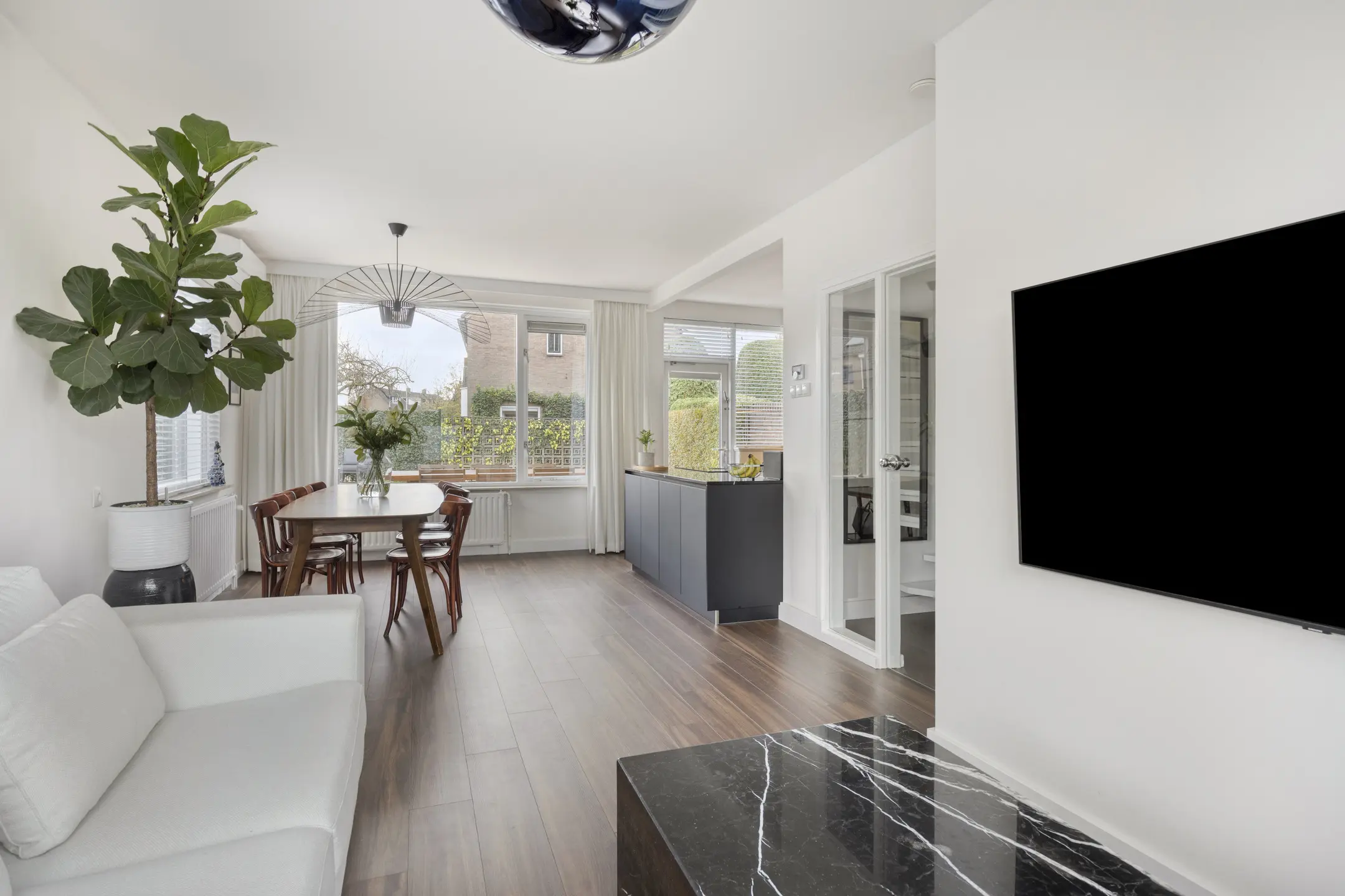 Bij aankomst valt de charmante uitstraling direct op. De woning beschikt over een fraaie voor-, zij- en achtertuin. De achtertuin is ruim 16 meter diep en ideaal gelegen op het zuiden: dé perfecte plek voor lange zomerdagen, ontspannen middagen en gezellige avonden met vrienden of familie. De achtertuin heeft vanwege de beschutte ligging veel privacy. De eigen oprit biedt parkeergelegenheid voor twee auto’s, voor de garage. Binnen word je verrast door de lichte, moderne en smaakvol ingerichte leefruimtes. De woning is onder andere voorzien van een splinternieuwe keuken met eiland, alle denkbare inbouwapparatuur (Quooker en Bora inductiekookplaat) en genoeg werkruimte. Hier kook je met gemak en plezier! De woonkamer ademt een moderne en warme sfeer. Hier voel je je direct thuis. De bovenverdiepingen zetten de hoogwaardige afwerking moeiteloos voort. De nieuwe badkamer straalt luxe uit en is voorzien van alle hedendaagse gemakken. De slaapkamers zijn ruim, comfortabel en prettig ingedeeld. De kers op de taart is de tweede verdieping met dakkapel: een fantastische, lichte ruimte.