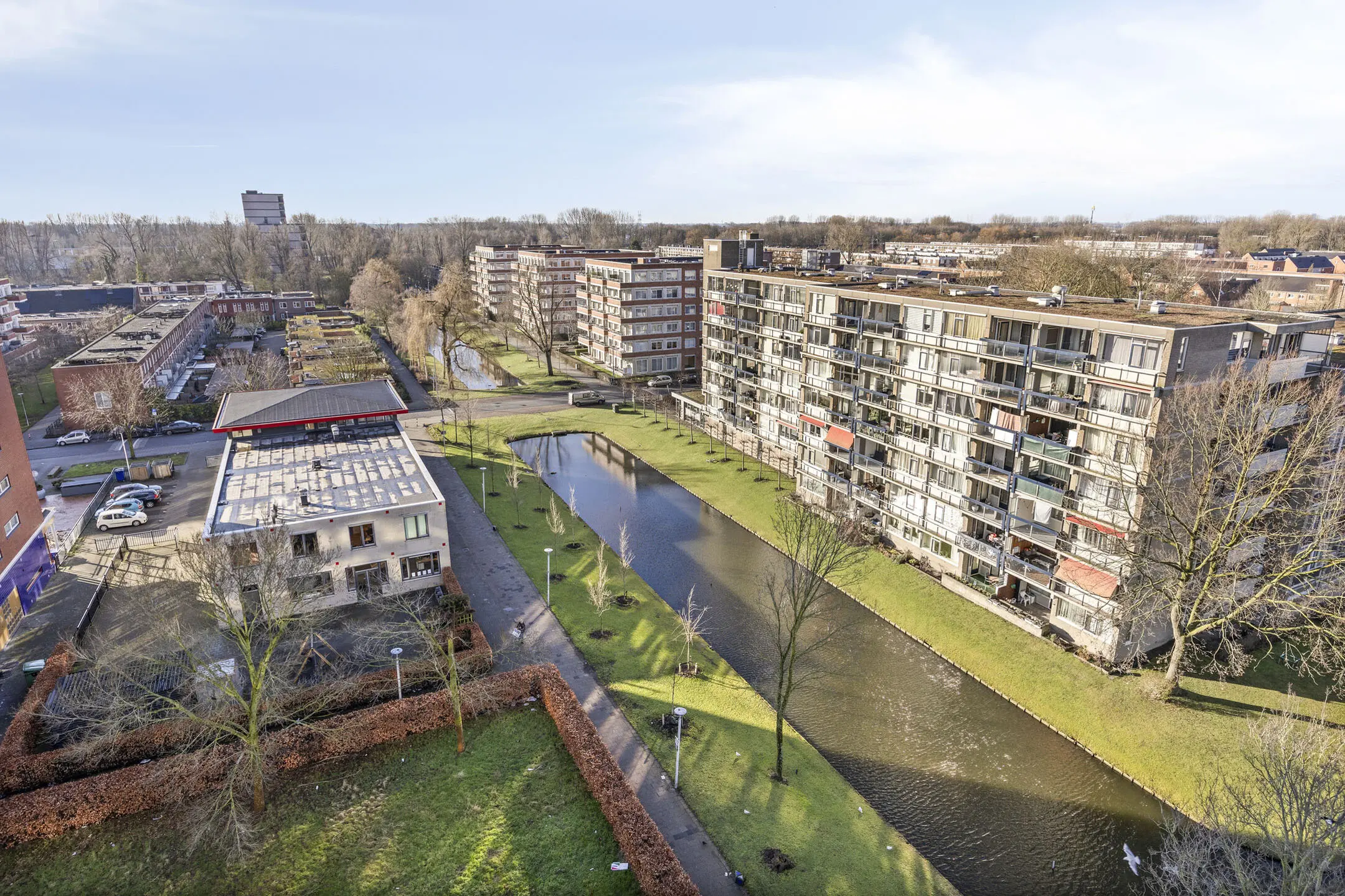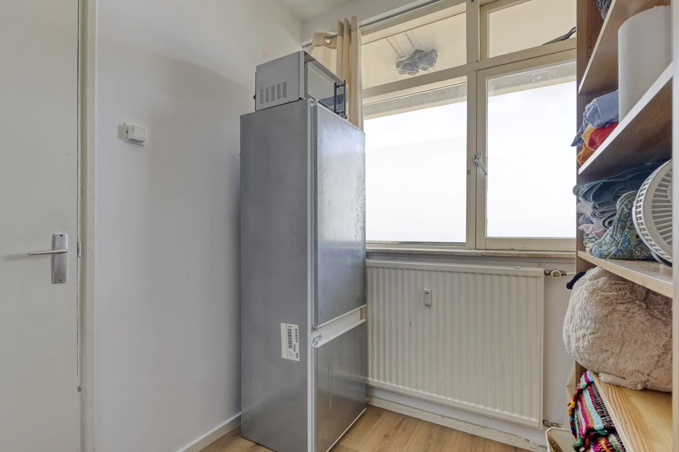 Negende verdieping: woningentree via de galerij; tochtportaal; hal voorzien van laminaatvloer, meterkast, vaste kast en toegang tot verschillende vertrekken. Toiletruimte voorzien van betegeling, closet en fonteintje. Doorgebroken woonkamer aan de achterzijde met laminaatvloer, vaste kast en toegang tot balkon. Inpandig balkon op het zuiden. Slaapkamer I aan de achterzijde voorzien van laminaatvloer en inbouwkast. Slaapkamer I aan de galerijzijde voorzien van laminaatvloer en dubbele inbouwkast. Slaapkamer II aan de galerijzijde voorzien van laminaatvloer en inbouwkast. Keukenruimte voorzien van functionele keukenblok met gaskookplaat en de opstelling van de boiler. Badkamer voorzien van betegeling, wastafelmeubel, doucheruimte, wasmachineaansluiting en opstelling voor de boiler.