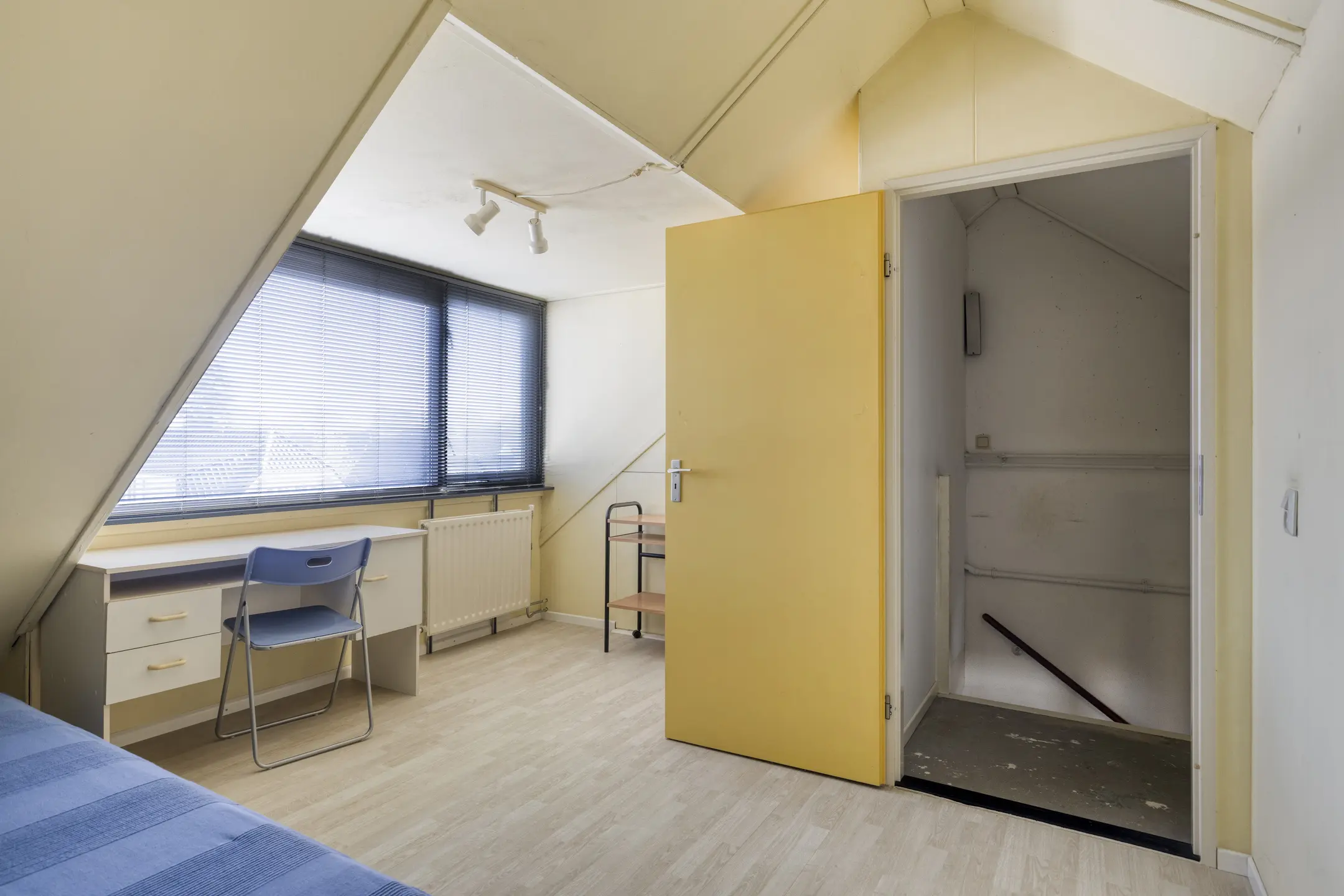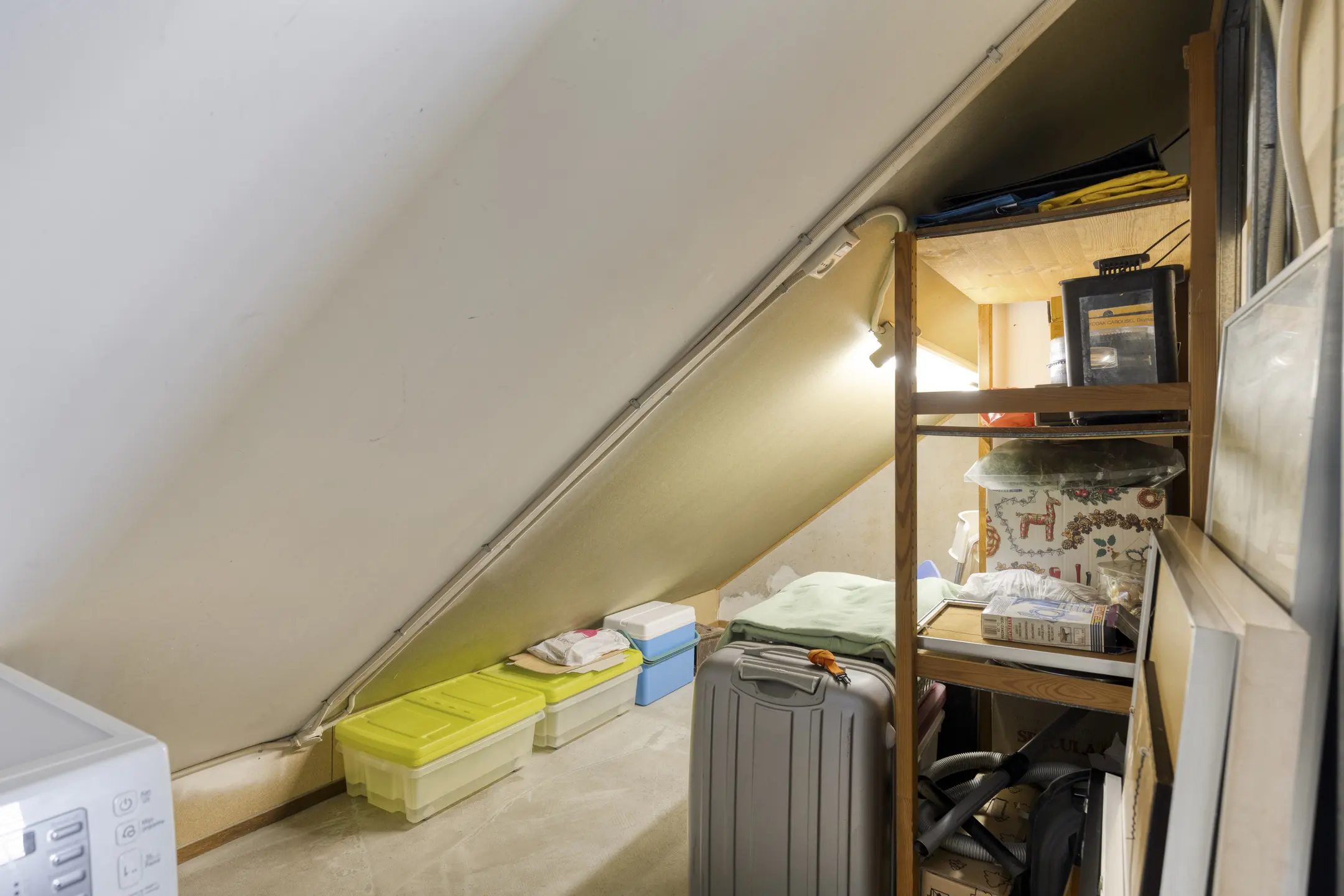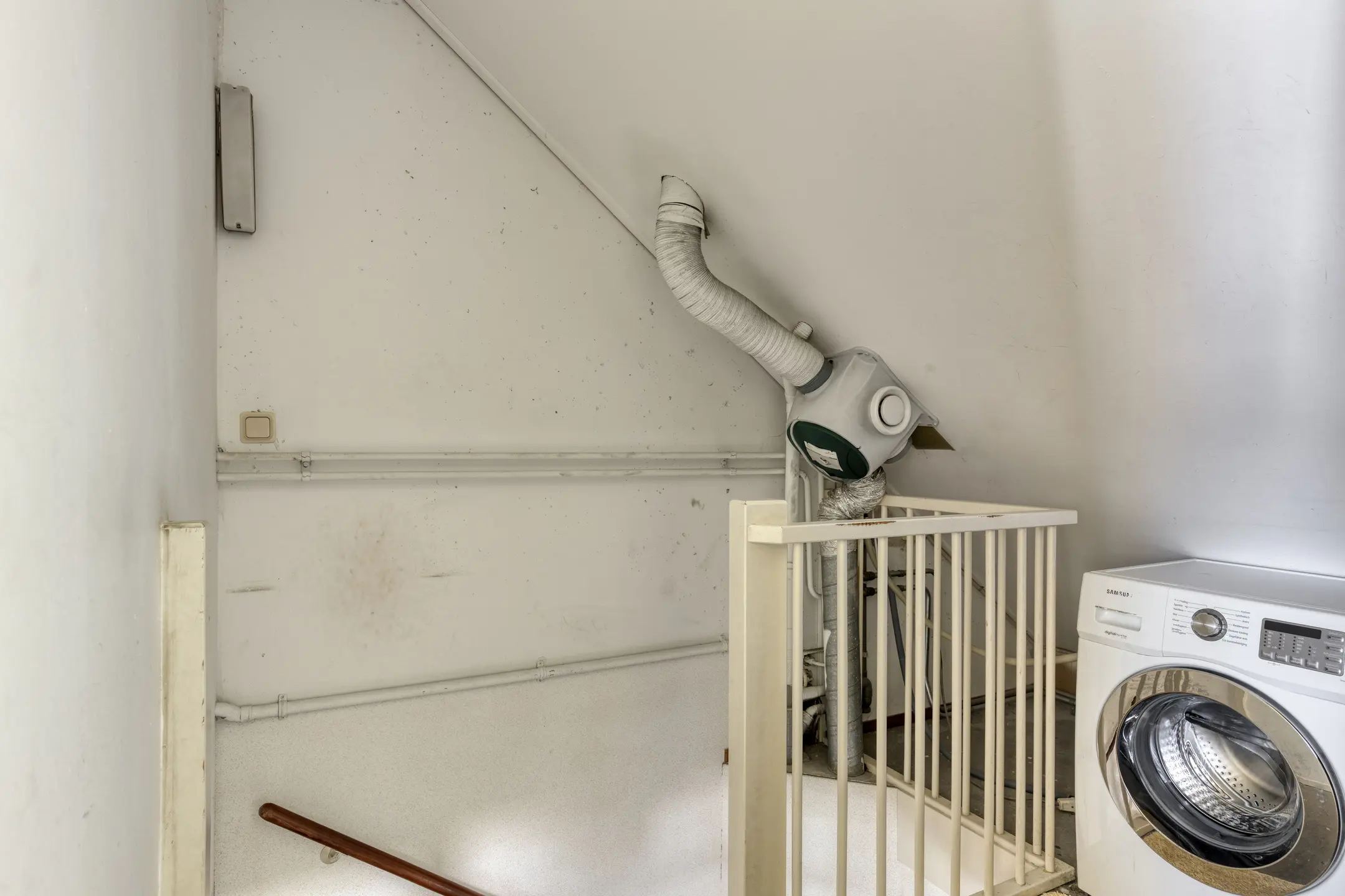 2e verdieping: mooie slaapkamer met dakkapel, overloop, bergruime, wasmachineaansluiting.