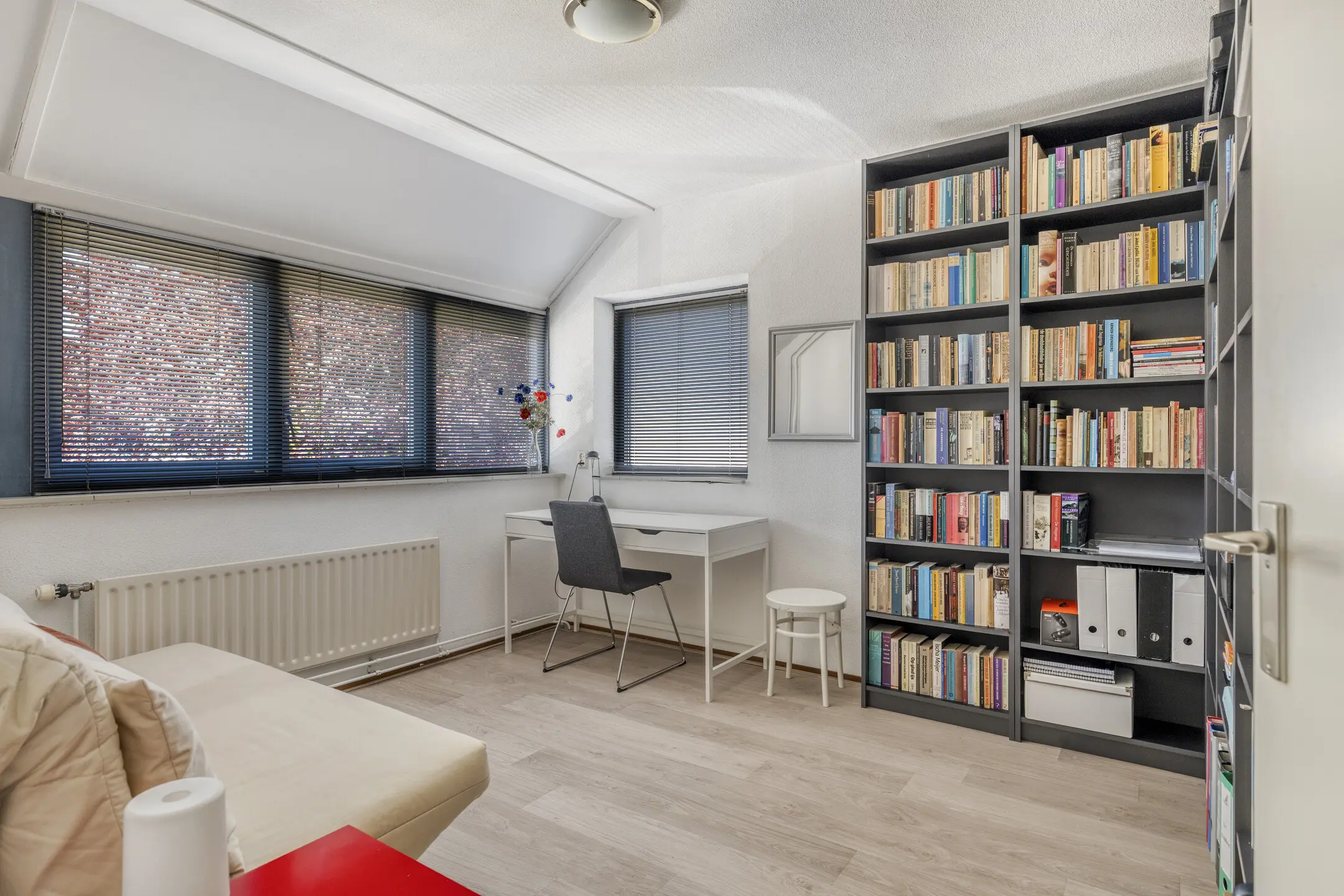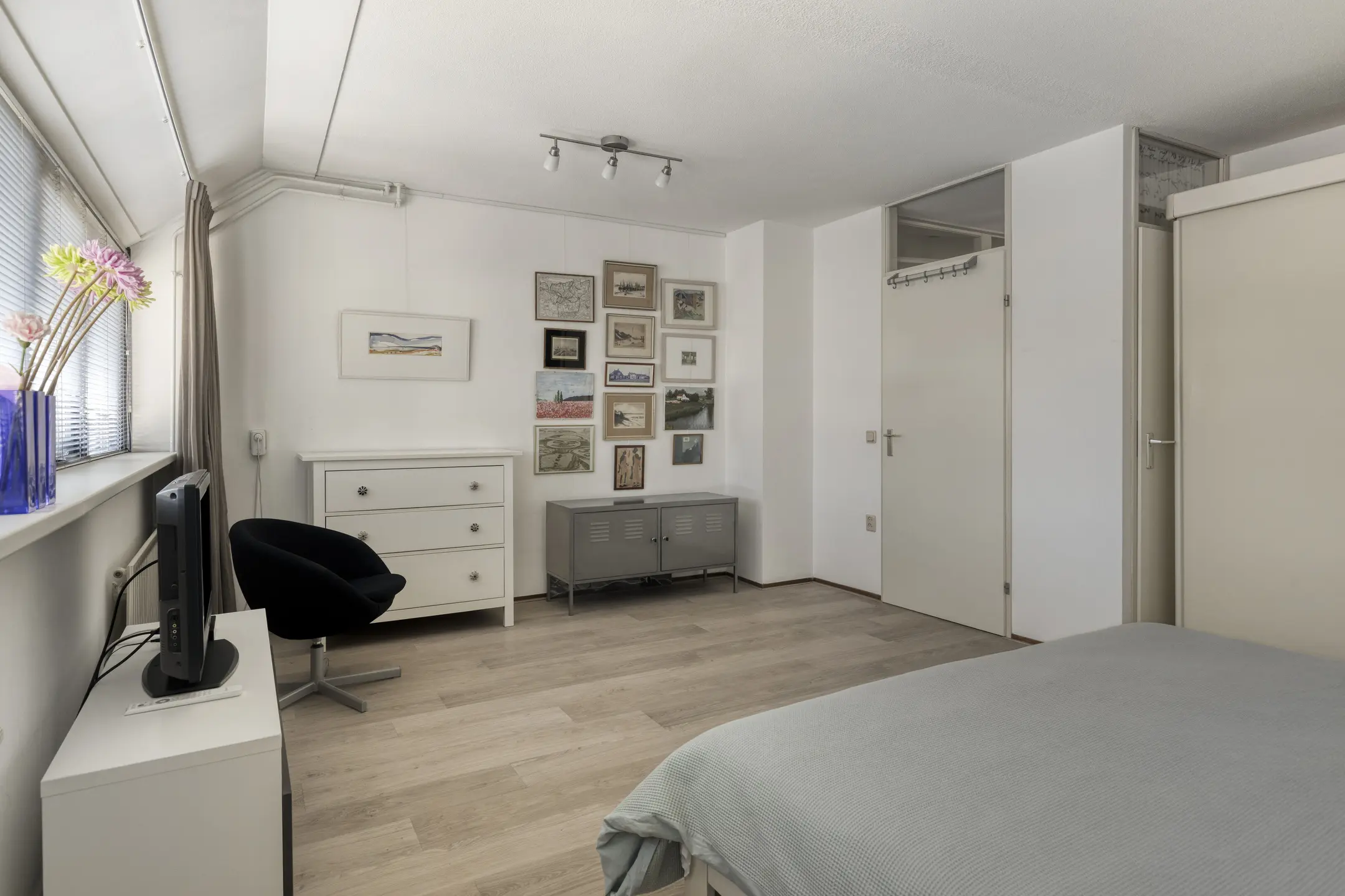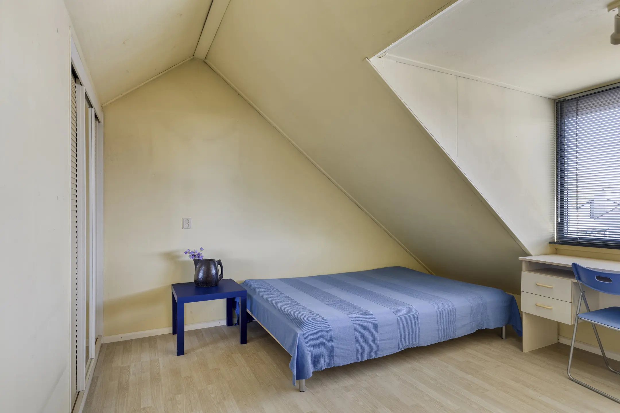 2e verdieping: mooie slaapkamer met dakkapel, overloop, bergruime, wasmachineaansluiting.