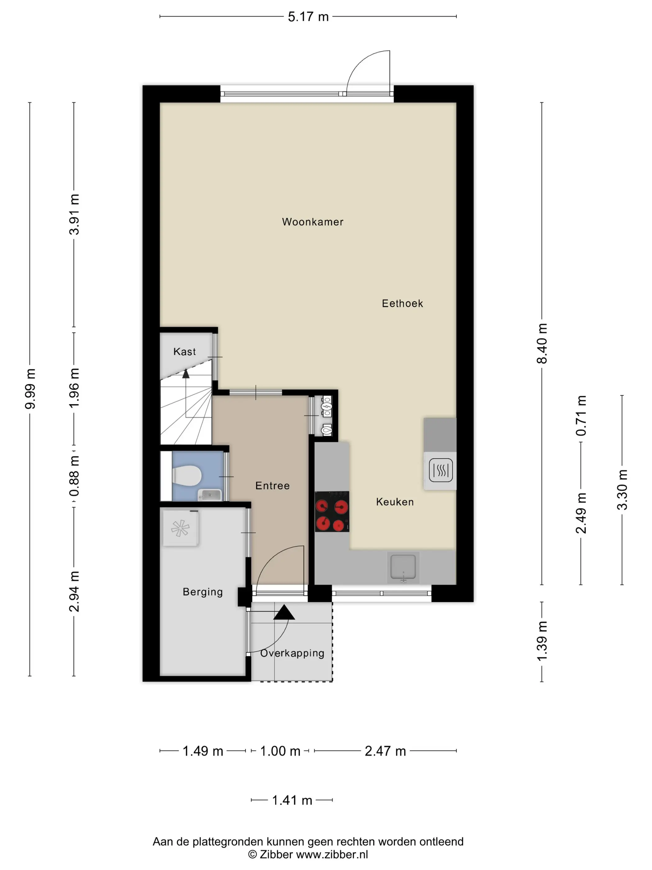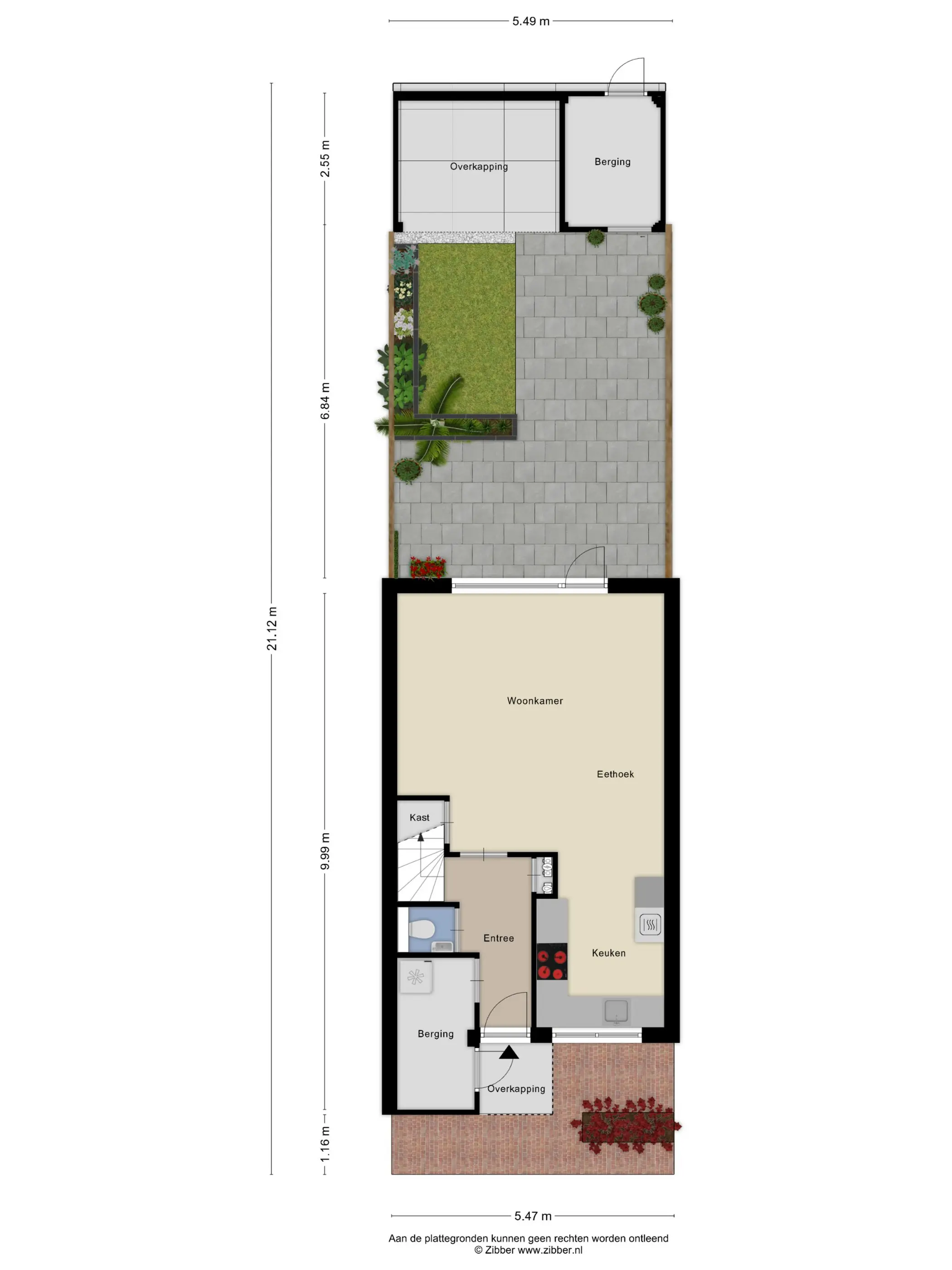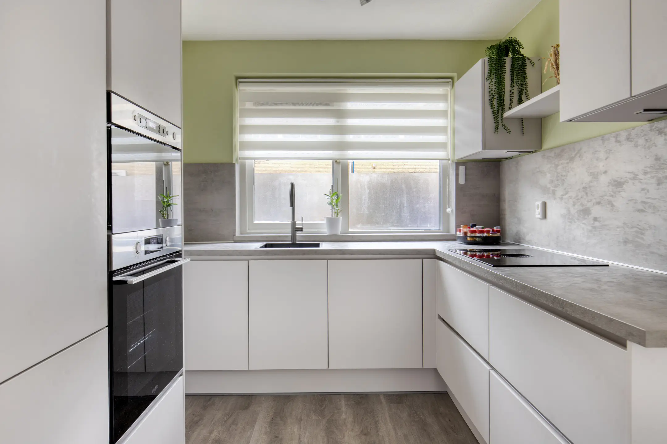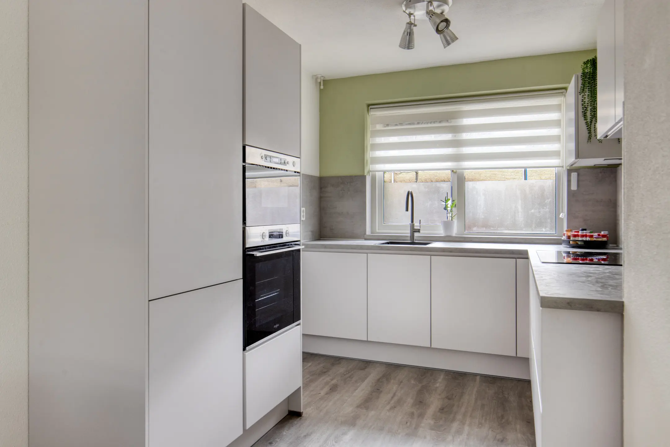 Indeling: hal/entree met meterkast, toilet en deur naar de berging, ruime woonkamer met bergkast en toegang tot de tuin, moderne open keuken (2025) met inductiekookplaat v.v. geïntegreerde afzuiging, magnetron, oven en vaatwasser.