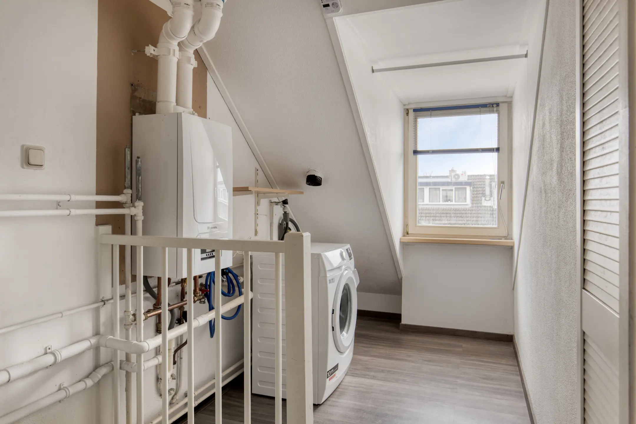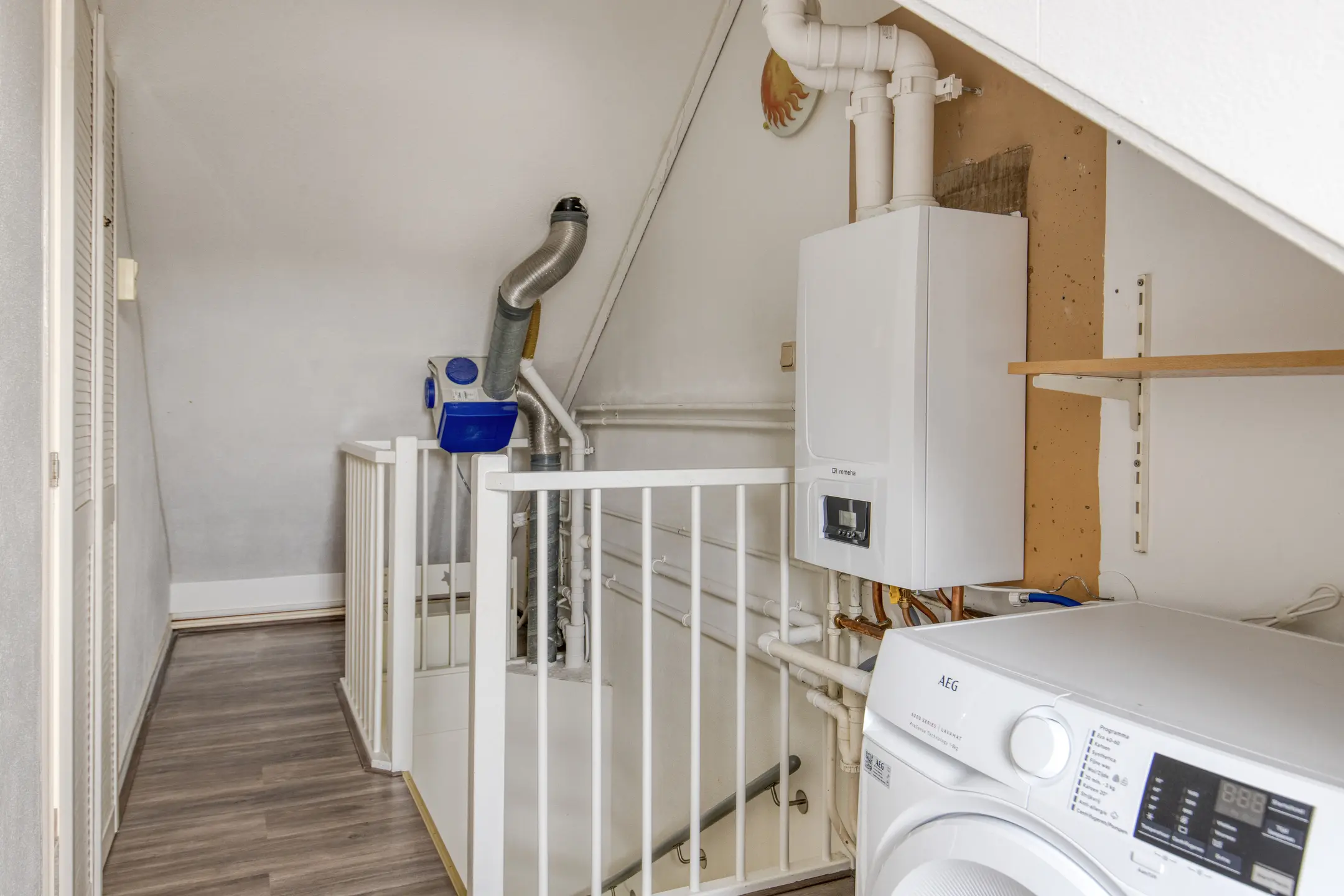 2e verdieping: ruime zolderslaapkamer met dakkapel en bergruimte, overloop met CV-opstelling en diverse inbouwapparatuur.